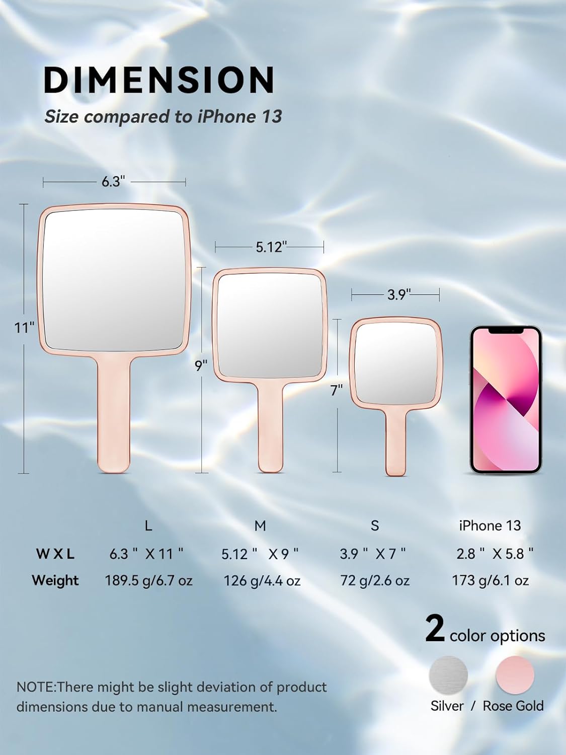 - Designed with both style and function in mind, our mirror handheld has a silver-plated finish,that ensures durability and easy cleaning, as well as provides a comfortable grip.