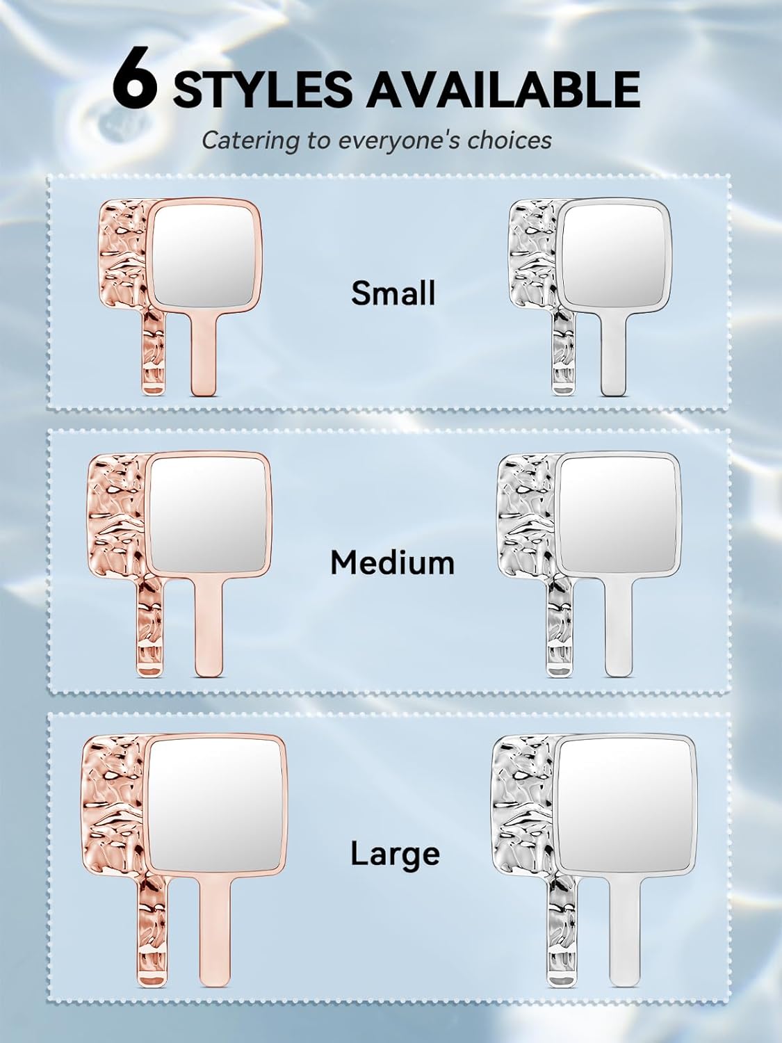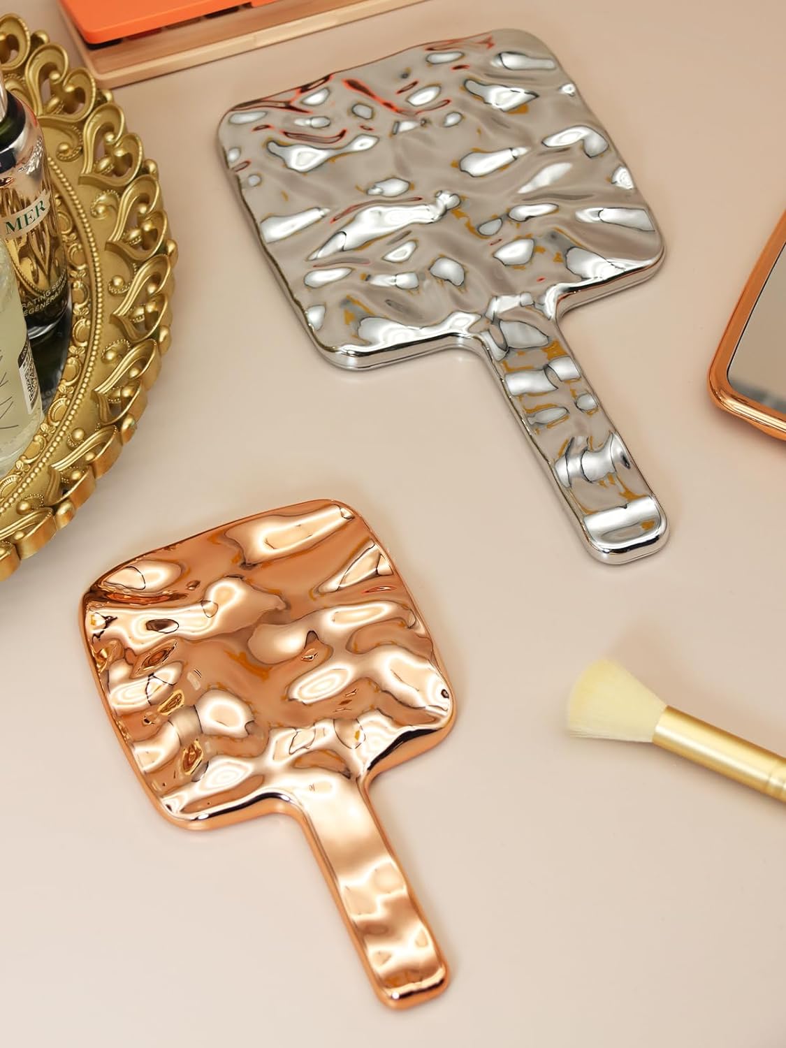 - Our stylish handheld mirror with its unique water ripple design on the back adds a touch of sophistication and elegance, while also adding visual interest.