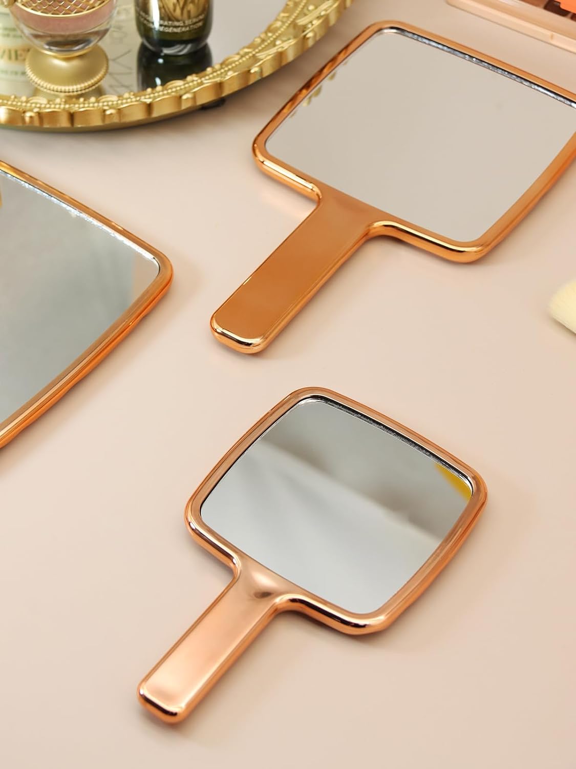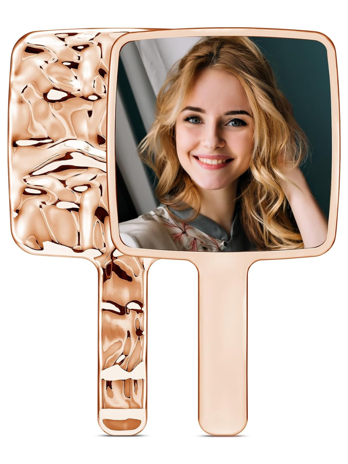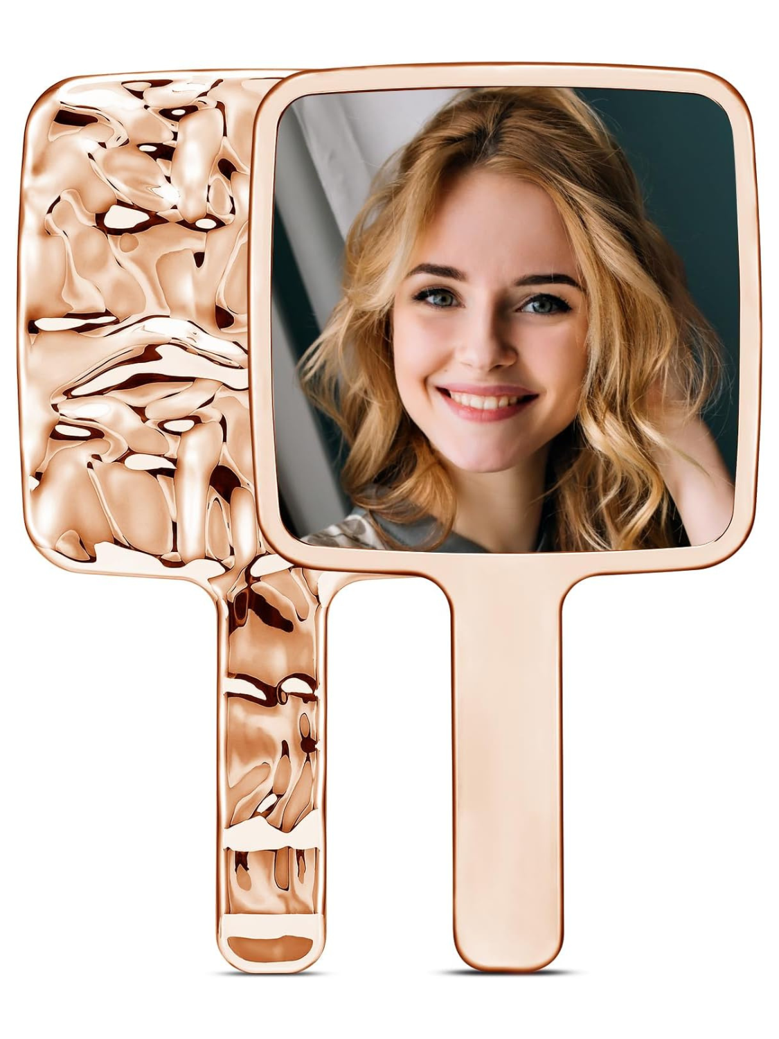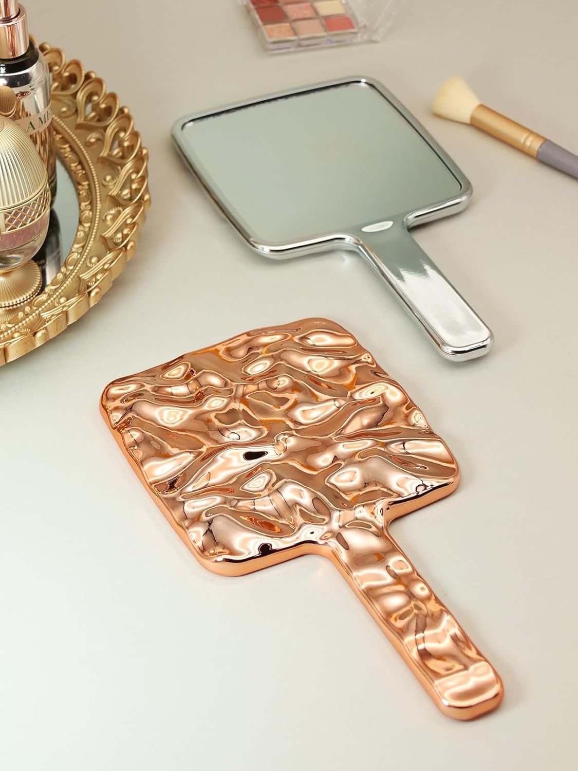 Handheld Mirror, Water Ripples Hand Mirror with Handle for Makeup, Square, Rose Gold, Small (4 x 7 inches)
