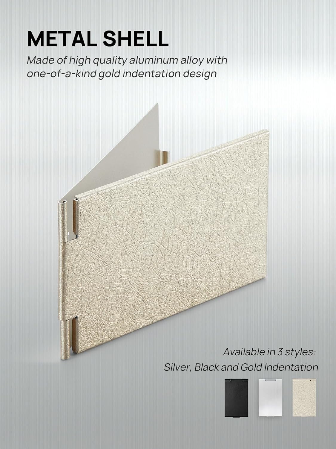 - PREMIUM METAL SHELL: This makeup mirror takes a high-quality aluminum alloy, with a gold indentation design,creating an elegant and modern aesthetic, adding a touch of sophistication to the overall appearance while providing both durability and a sleek finish.