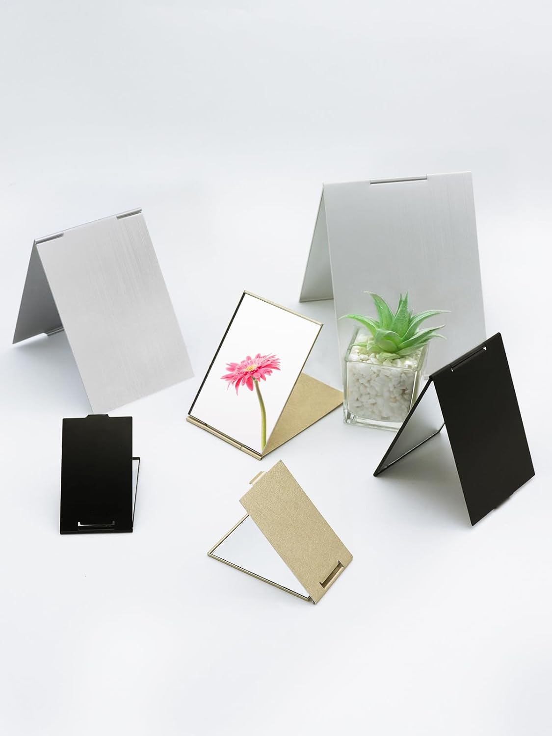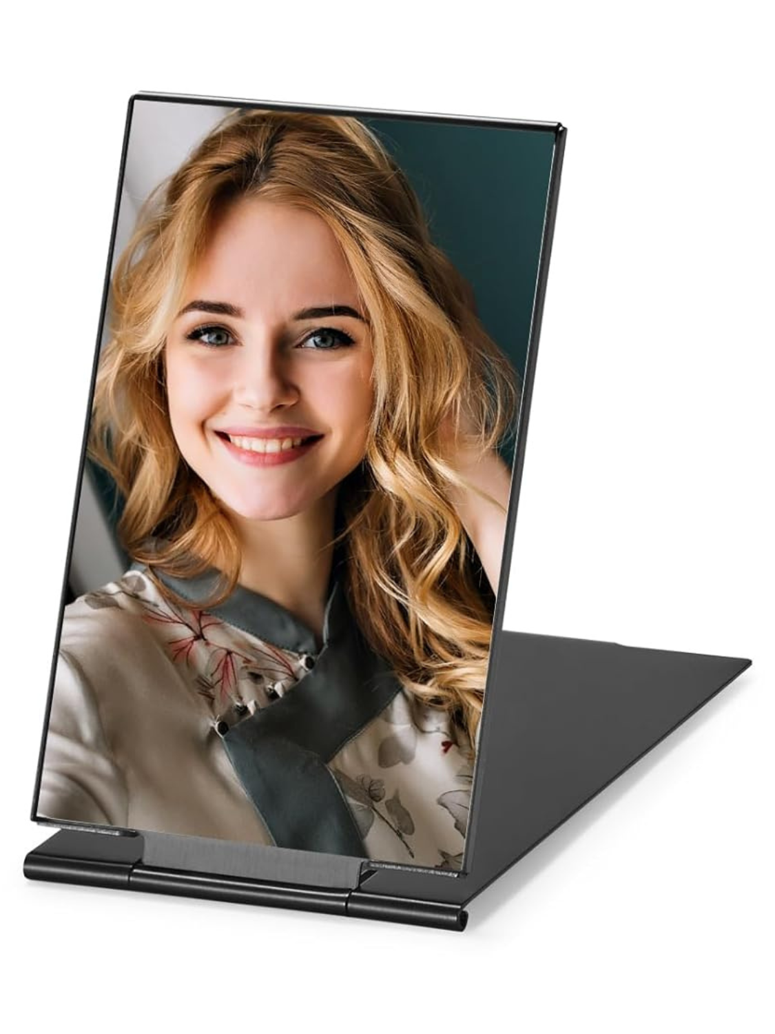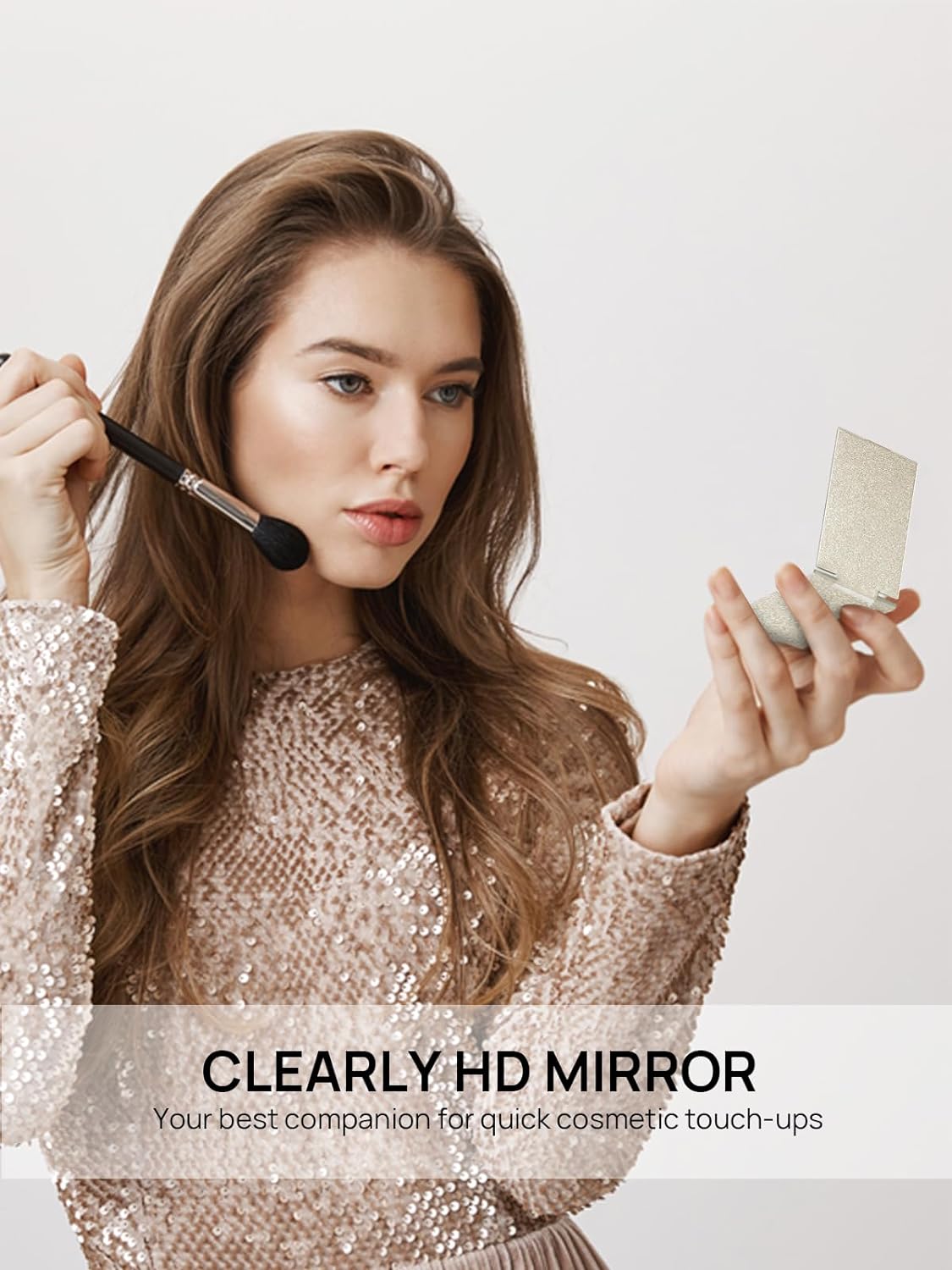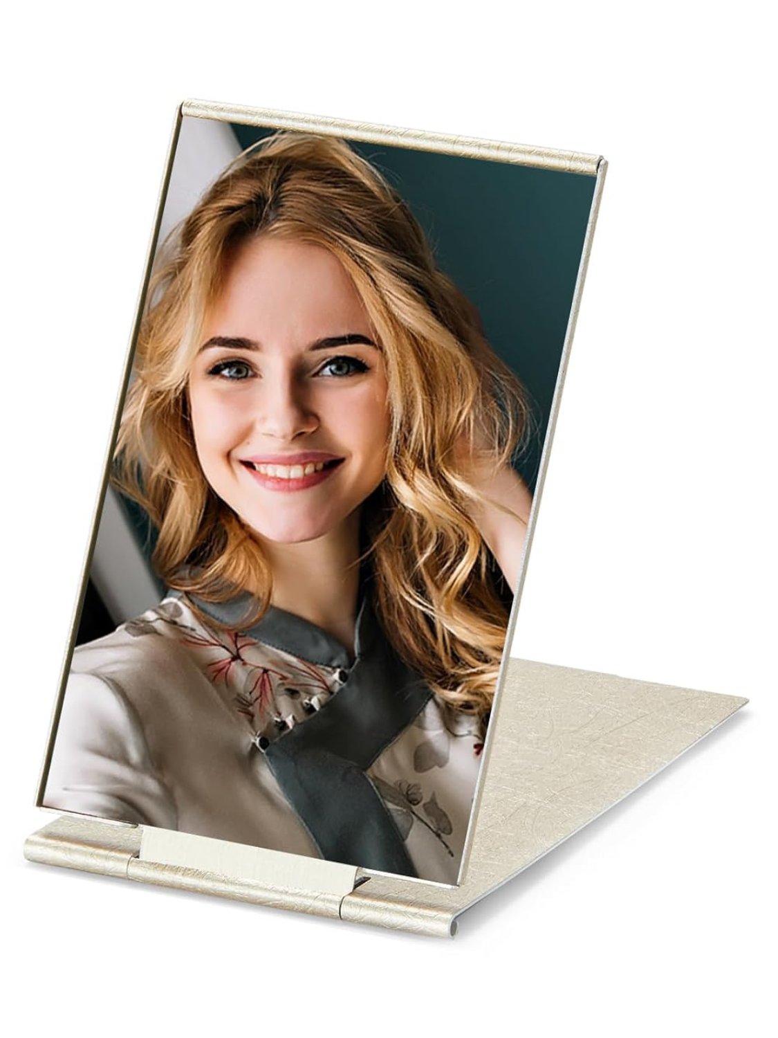 - 2-WAY DESIGN: This compact mirror can be handheld or without any support, stand-alone on your table by flipping the lid.