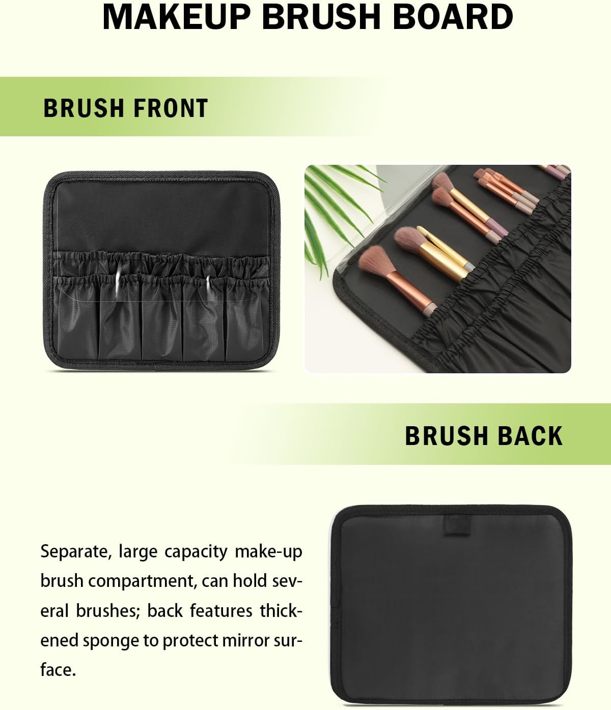 - The lighted makeup case also comes with a makeup brush organizer that holds makeup brushes in place to prevent them from getting damaged, while the thick sponge back cushions and protects the mirror while traveling