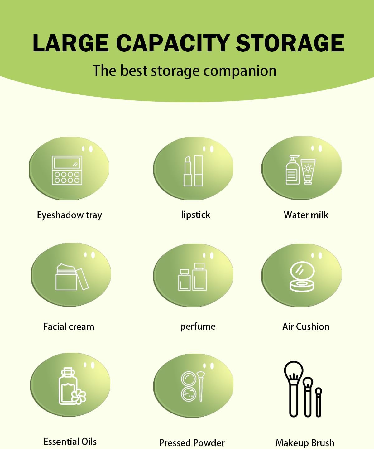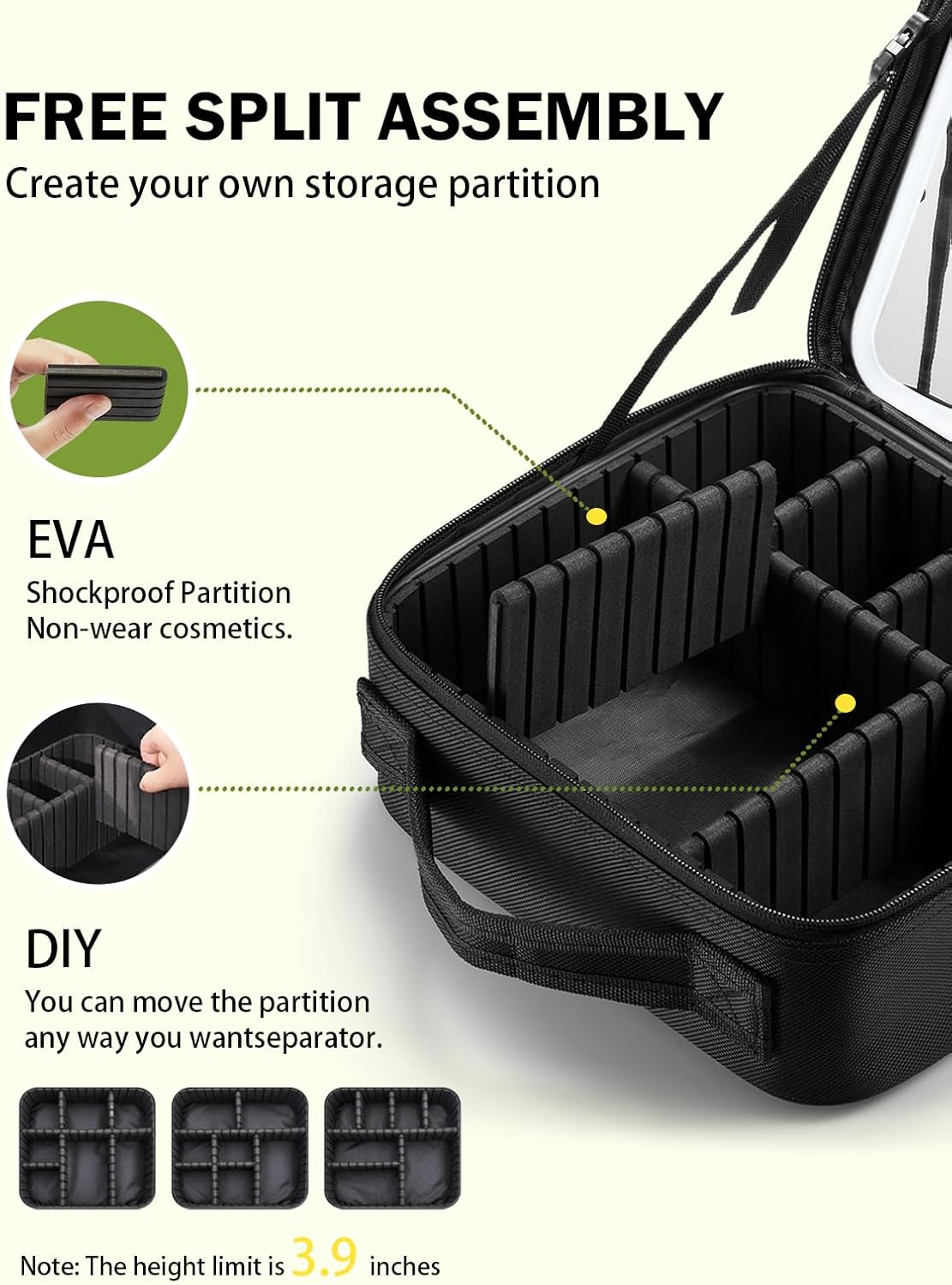 - Customize the storage space for your makeup products, skincare products, and accessories by casually adjusting the EVA dividers inside the makeup organizer to keep everything neatly organized and easily accessible